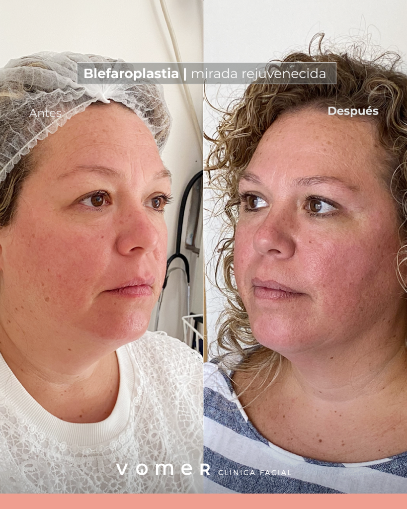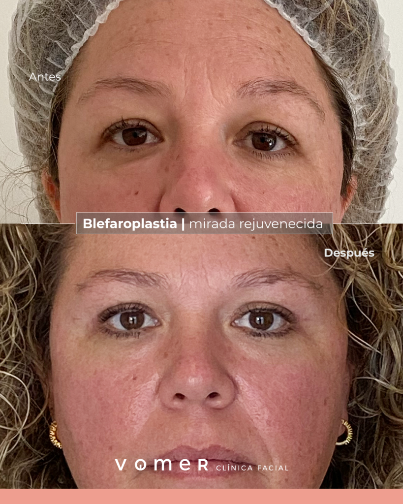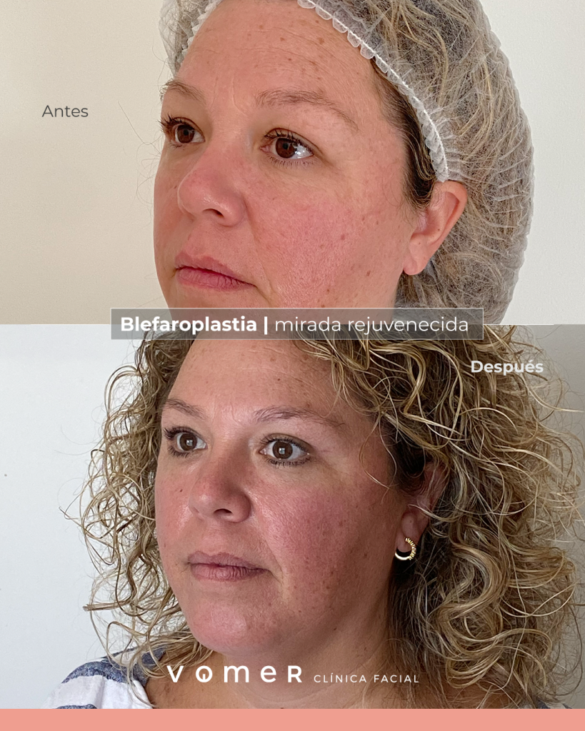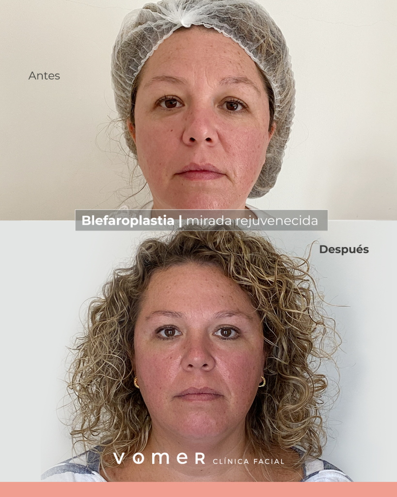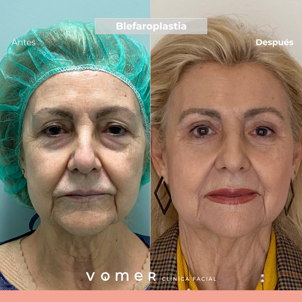 En este caso, hemos realizado una blefaroplastia en la que hemos abordado tanto las bolsas inferiores como la caída de los párpados superiores. Tras la intervención, nuestra paciente presenta una mirada más abierta y rejuvenecida. Resultados naturales sin cicatrices visibles.