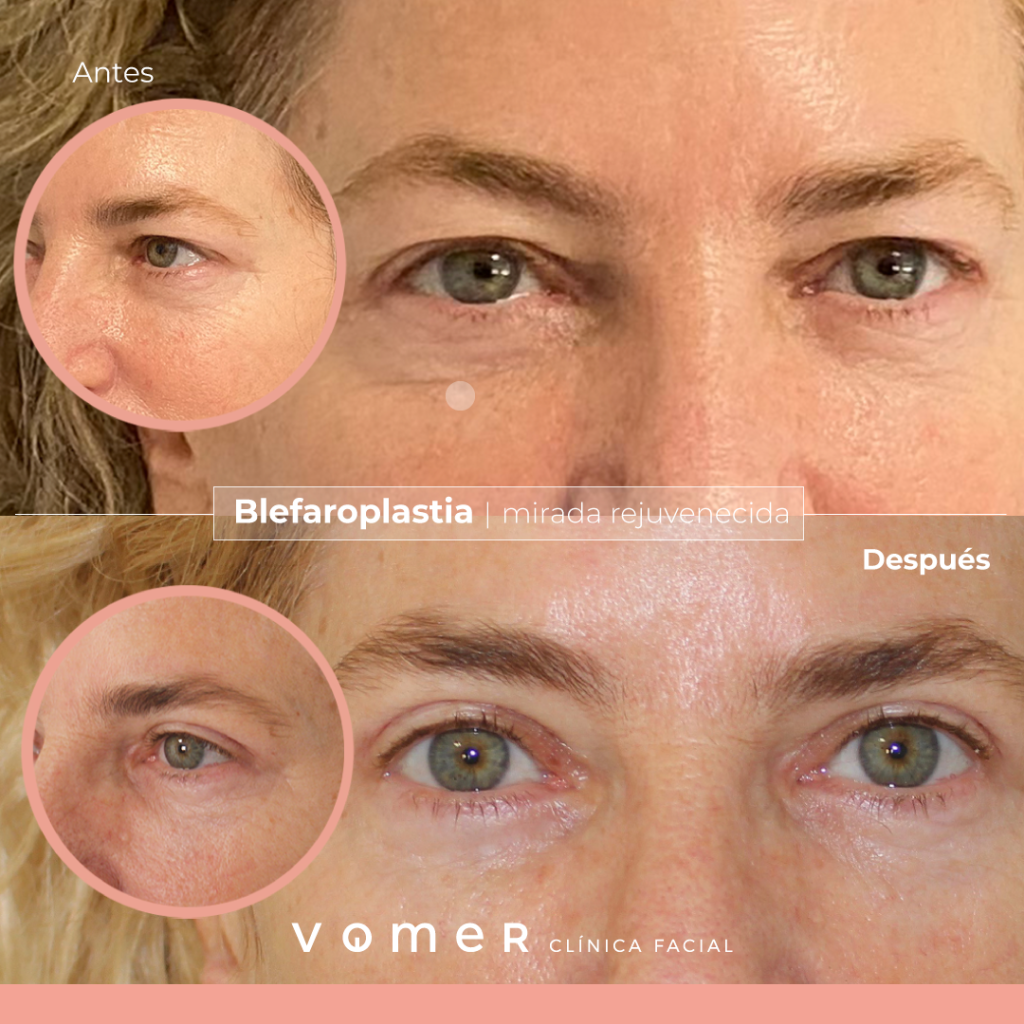 En Clínica Vómer, como especialistas en esta intervención, tratamos que las incisiones sean imperceptibles tras la cicatrización. En el párpado superior, la cicatriz queda escondida en el pliegue natural de la piel; mientras que en el párpado inferior, sobre todo en pacientes jóvenes, el abordaje es transconjuntival, por lo que no existen cicatrices en la piel.