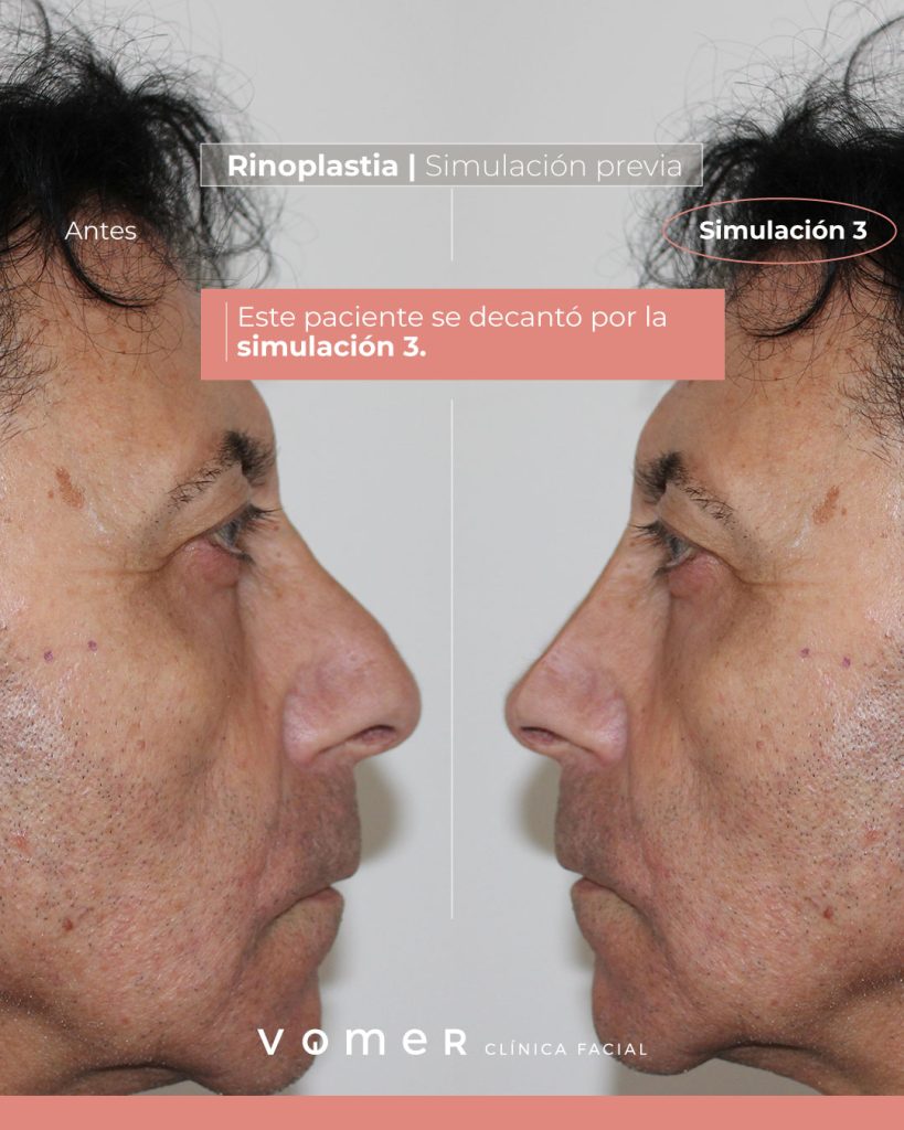 En Vómer, somos muy cuidadosos a la hora de planificar la intervención. Por ello, ofrecemos a nuestros pacientes distintas simulaciones en 2D con la finalidad de acercarnos lo máximo posible a sus expectativas y preferencias.